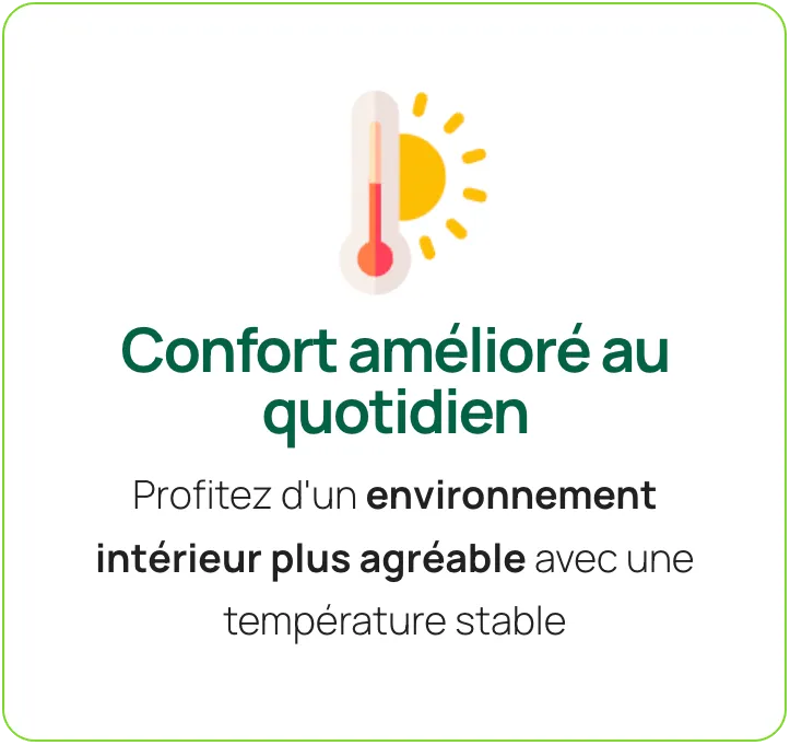 Conservez la chaleur en hiver et la fraîcheur en été et réalisez également d’importantes économies sur vos factures d'énergie.